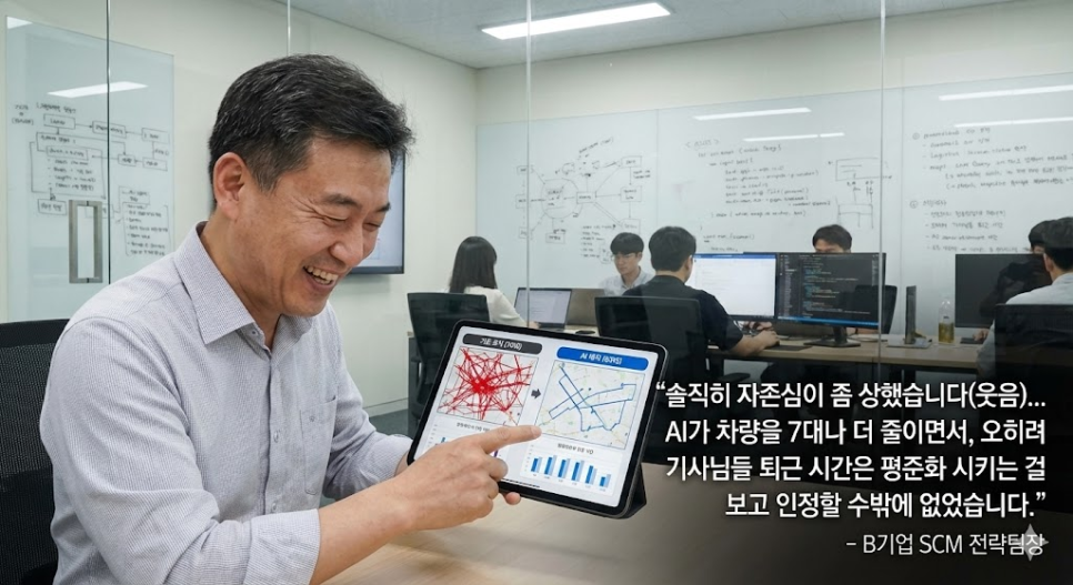 매일 아침 배차 계획을 짜느라 엑셀과 씨름하던 담당자는 이제 AI가 짠 계획을 검토하고 승인하는 '관리자'의 역할로 올라섰습니다.