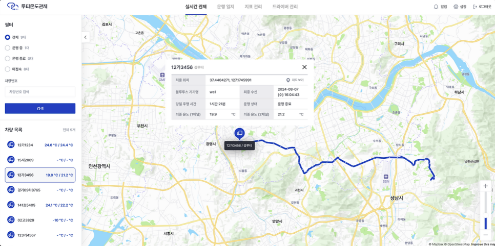 루티온도관제 실시간 관제 화면 출처 : 위밋모빌리티