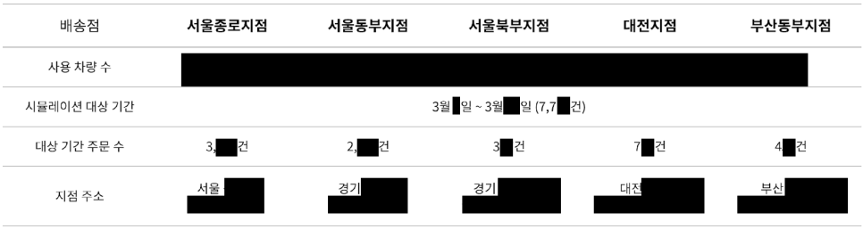 지점별 관할권과 지역 특성, 기사별 업무 배분(업무 시간, 업무량) 등 고려한 라스트마일 배송 최적화