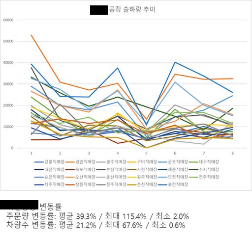고객사 A 공장 직매장별 월 출하량 추이 출처: (주)위밋모빌리티