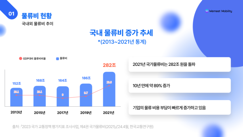 국내 물류비 증가 추세 출처: 위밋모빌리티