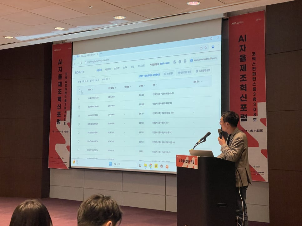 지난주 금요일, AI 자율제조혁신 포럼에 참석해 물류 산업의 미래와 루티서비스를 공유하고 왔어요.