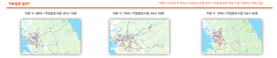 각 시나리오는 서로 다른 물류 전략을 실험해보는 방식이었고
