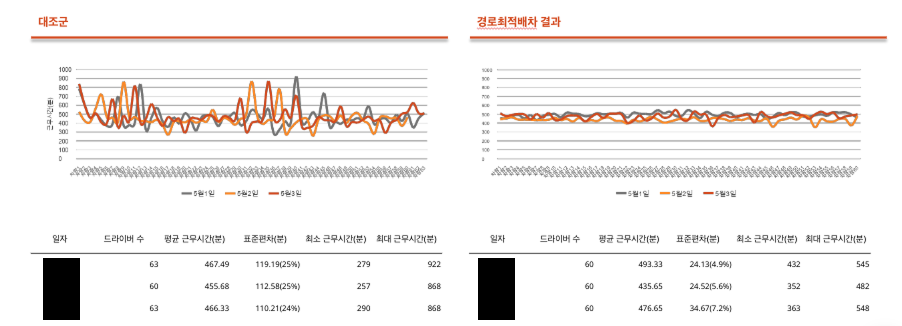 기존 대비 약 28명의 드라이버를 줄이면서도 전체 업무가 문제없이 완료했어요.