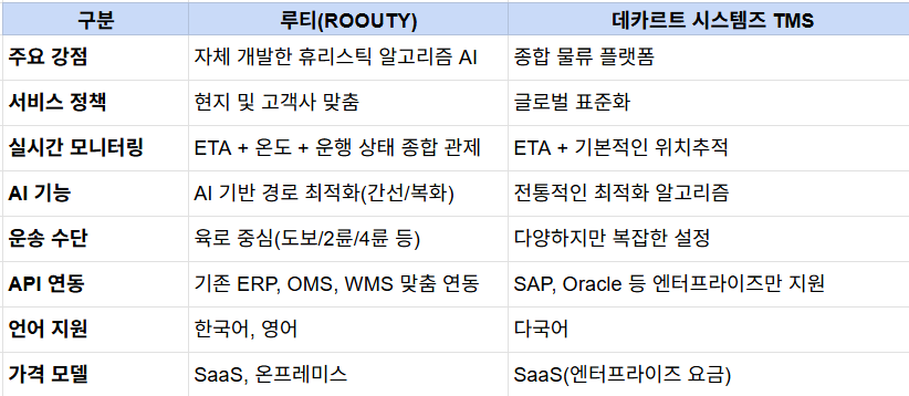 루티 vs 데카르트 시스템즈 TMS 비교 출처: (주)위밋모빌리티
