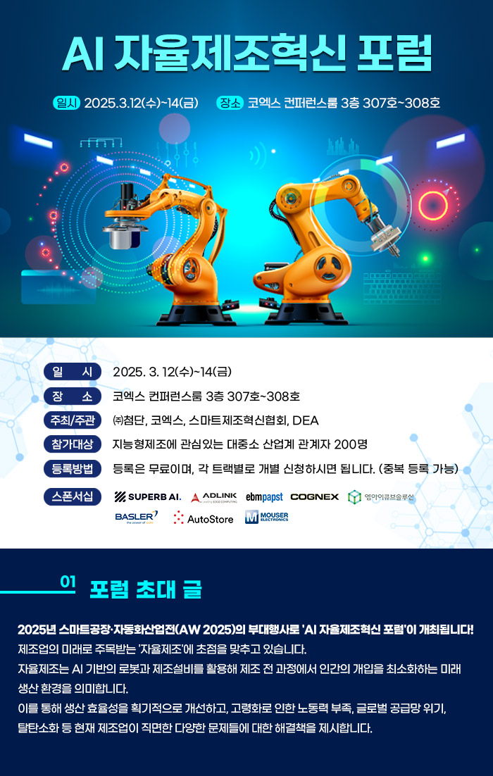 🎤 참가 대상: 지능형 제조, 스마트 물류, AI 기반 자동화에 관심 있는 기업 및 관계자