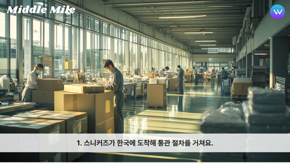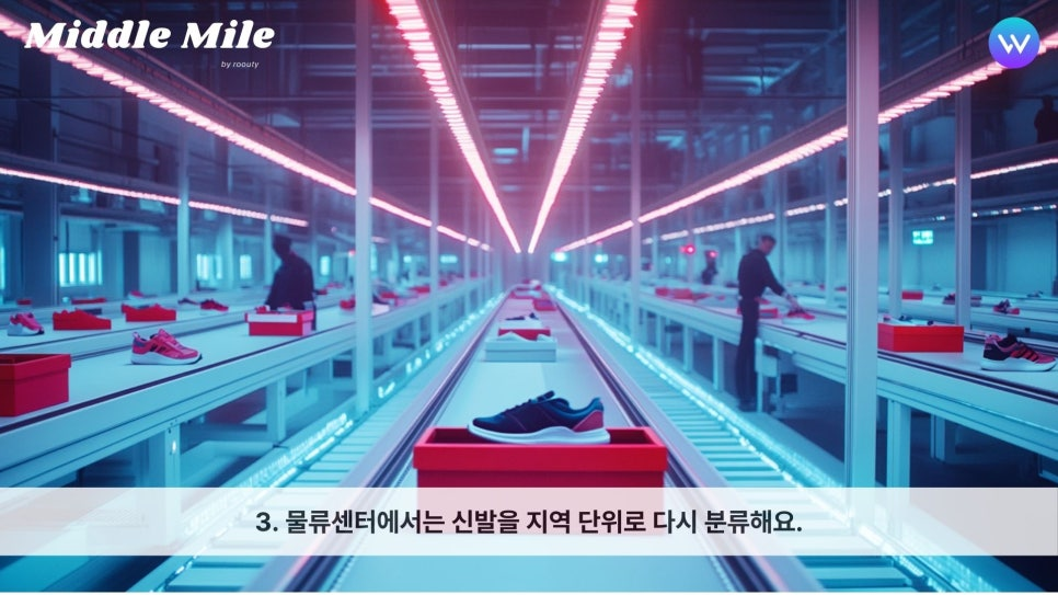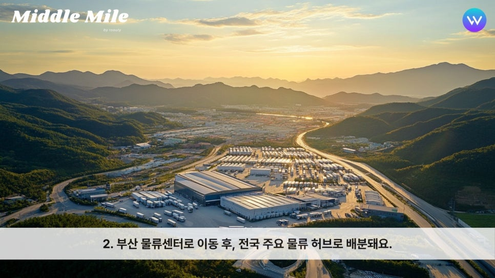 미들마일은 물류의 중간 과정으로, 상품이 물류 센터에서 큰 배송 허브로 이동하는 단계를 말해요.