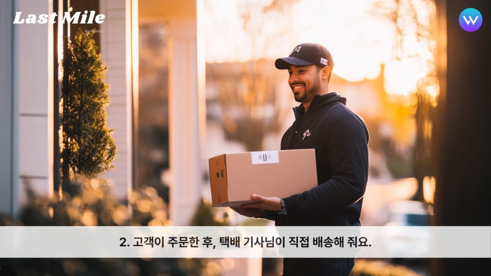 예를 들어, 택배 기사가 고객 집 앞까지 상품을 가져다주는 과정이 라스트마일이에요.
