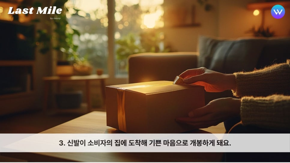 이 단계는 우리에게 가장 친숙한 모습이죠? 택배기사님이 현관문 앞에 소중한 패키지를 놓아주시는 그 순간까지를 말합니다.